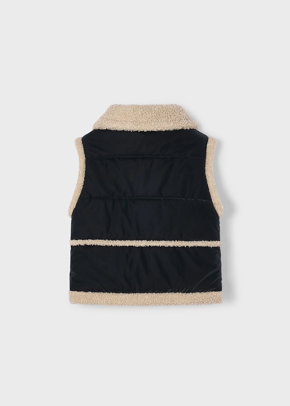 Contiene poliéster reciclado. Chaleco para niña. Cuello de pelo. Cierre central delantero con cremallera.